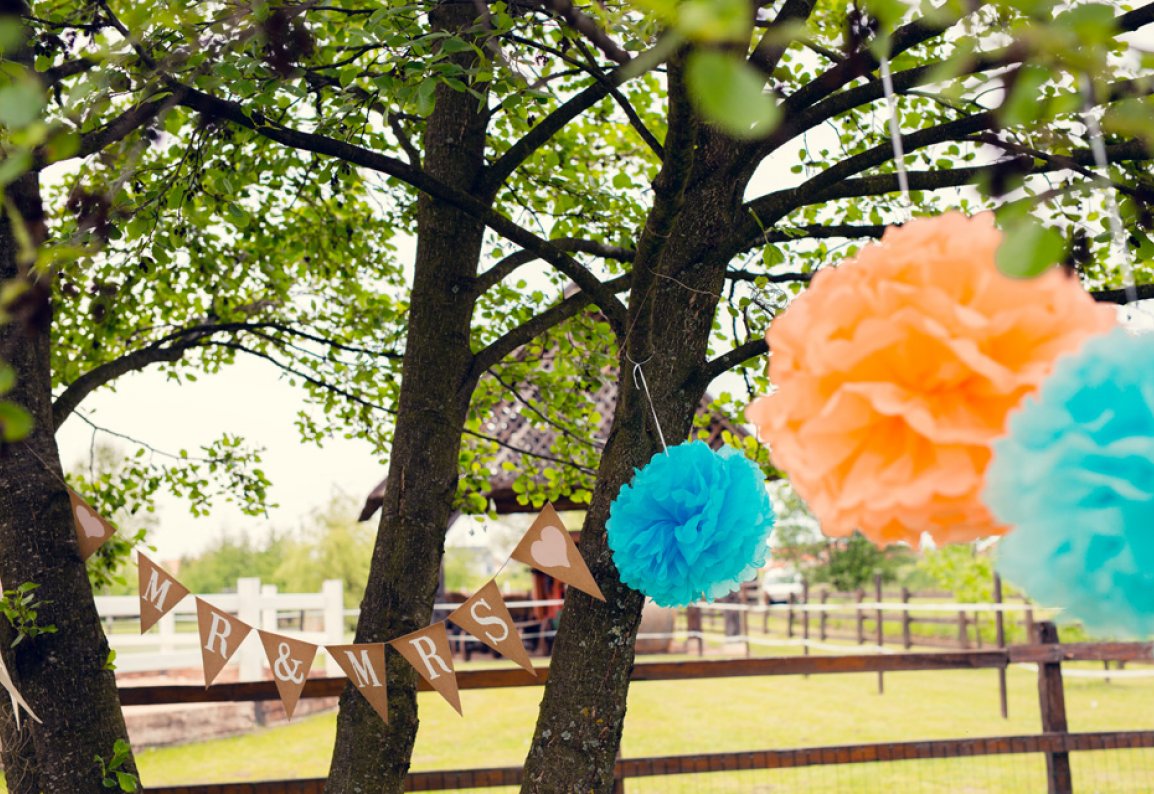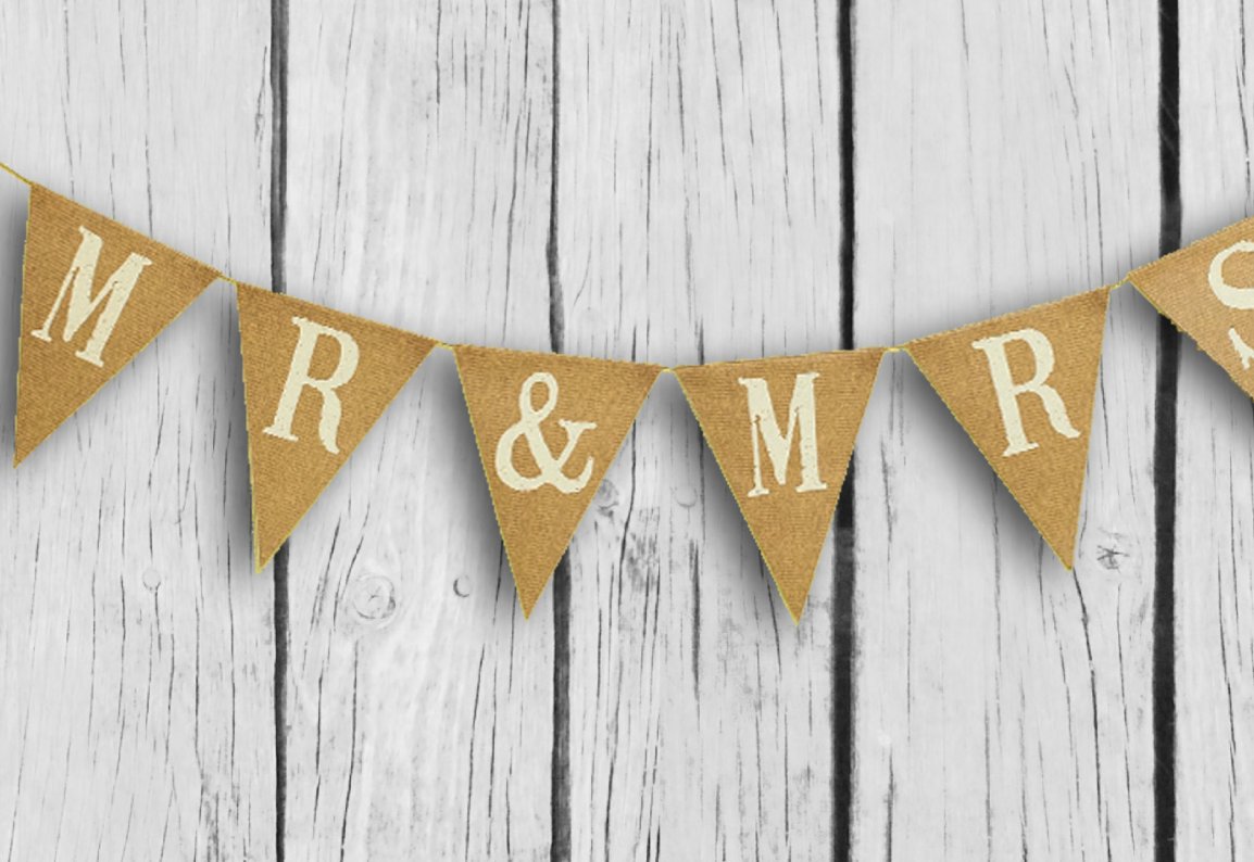 Rustikalni papirnati bunting s bijelim slovima i nježno rozim srcima na špagici. Super trendi dekoracija za vjenčanja. Objesite ga iznad vrata, ispred ili iznad stola na prijemu, zapravo bilo gdje. Dimenzija zastavice 16 x 20 cm, dužina buntinga: 1,5 m + cca 4 m višak špagice sa svake strane.