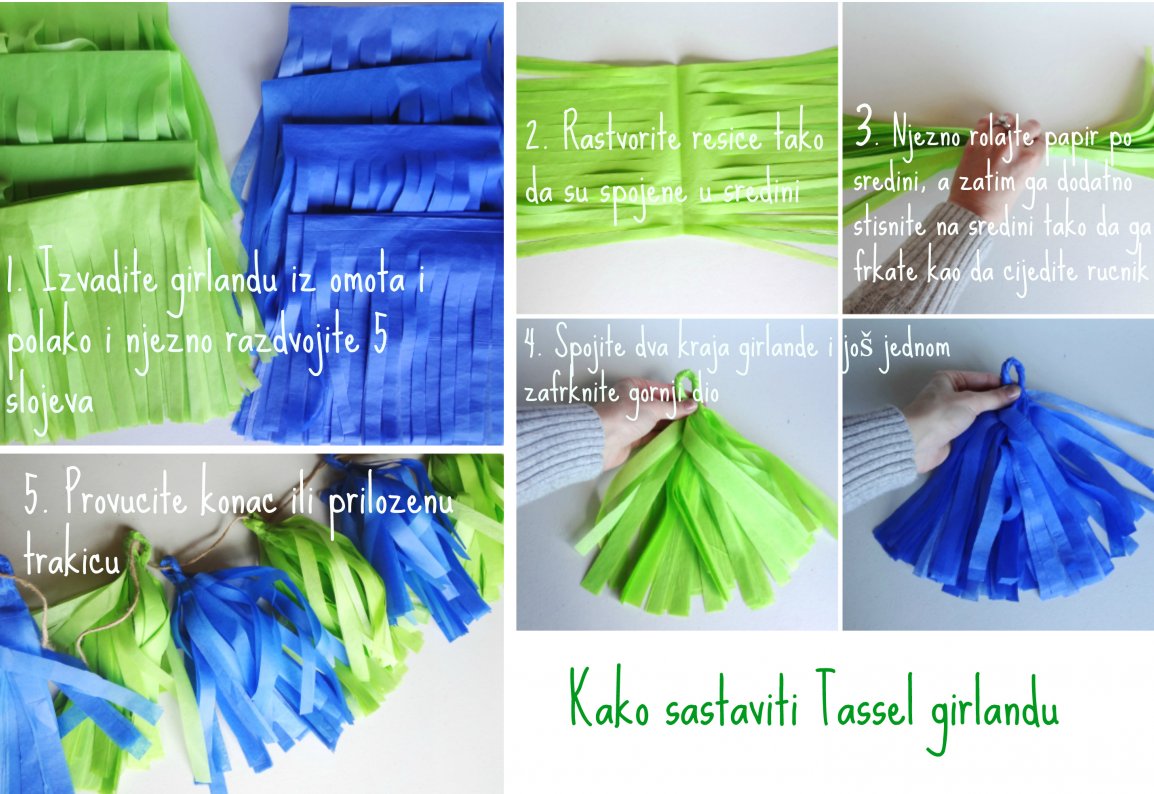 Za girlandu od npr 1m potrebno vam je 15 do 20 resica, tj. 3 do 4 paketa.