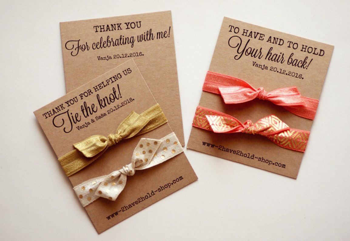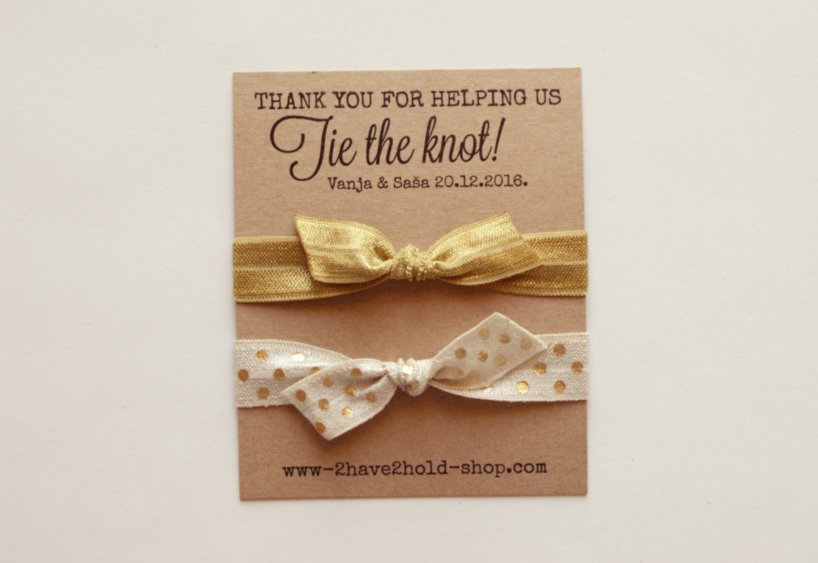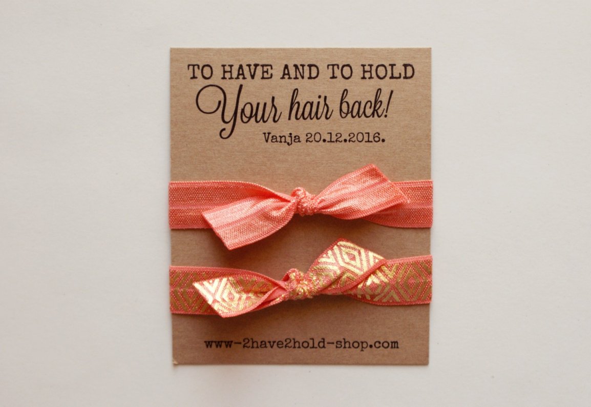 Ove trakice za kosu s mašnicom ugodne su, ne stišću i ne lome kosu, a odlično izgledaju i na ruci, s personaliziranim kartončićem i jednom od tri ponuđene poruke, super su poklon za vaše prijateljice, djeveruše, ili goste na vjenčanju.
