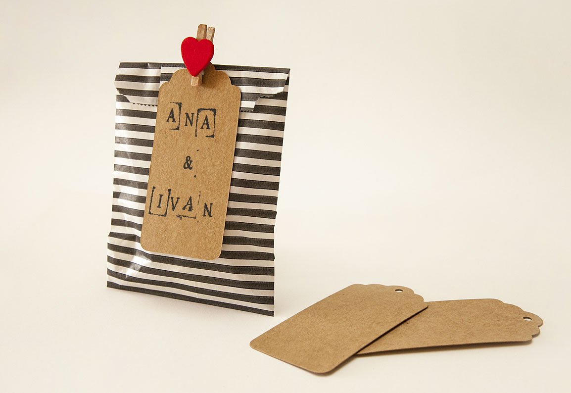 Ove veće privjesnice, napravljene od 100 % recikliranog smeđeg ili bijelog kartona, dolaze u paketu od 20 komada s pripadajućom jutenom ili bijelom papirnom vezicom. Ovdje ima dovoljno prostora da budete kreativni, ukrasite ih washy tapeom ili se poigrajte s gumenim štambiljima – dajte im samo svoj pečat! Na njih možete pisati posvete, zahvale, stihove…. ili napišite ime gosta i koristite ih kao oznake mjesta sjedenja…