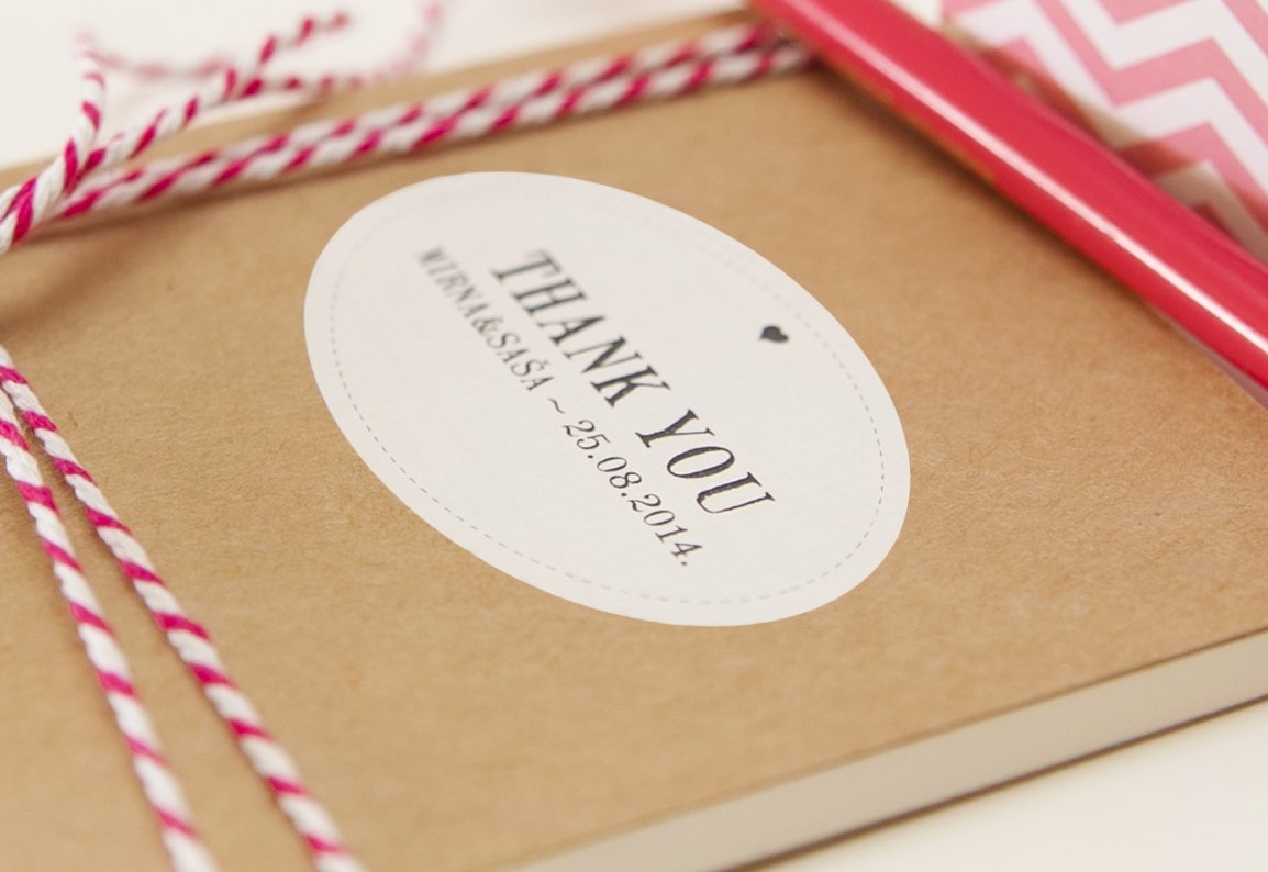 Ove personalizirane naljepnice napravljene su tako da ih možete zalijepiti na bilo koju našu kutijicu, vrećicu, teglicu. Ili možda već imate svoje teglice s domaćim džemom, vrećice sa keksićima ili bočicu domaće rakije, a želite ih dodatno ukrasiti i personalizirati. Idealne dimenzije: 4 x 6 cm, elegantan oblik i dizajn slagati će se sa svakom bojom ili temom.
